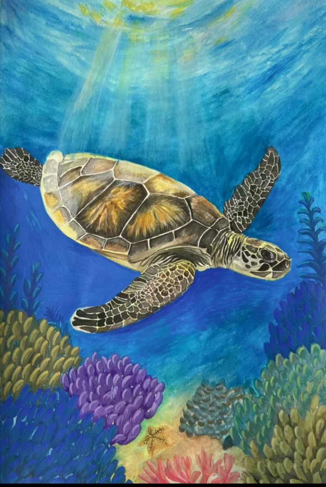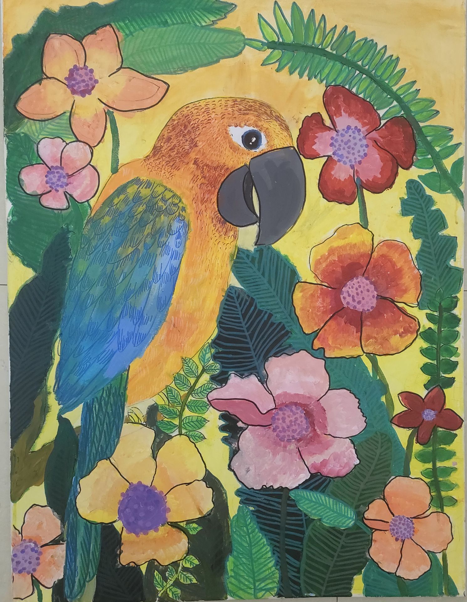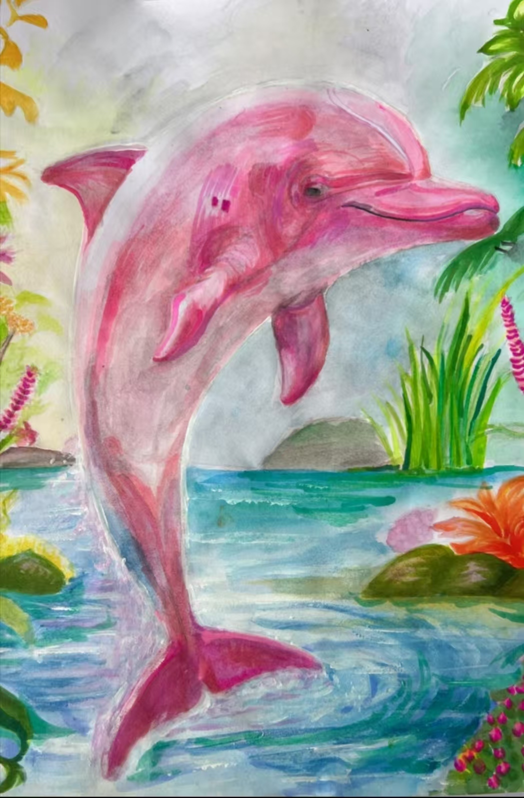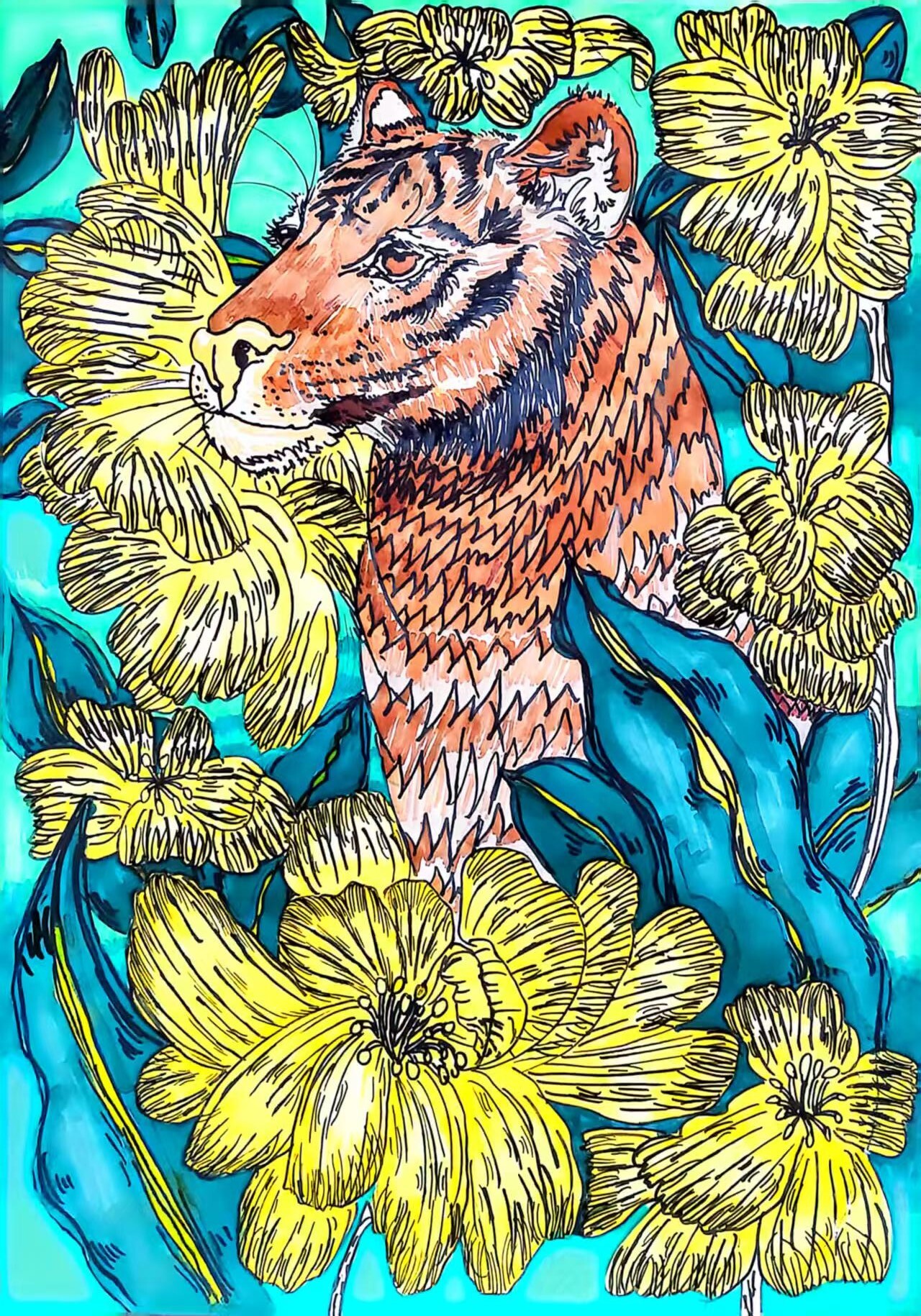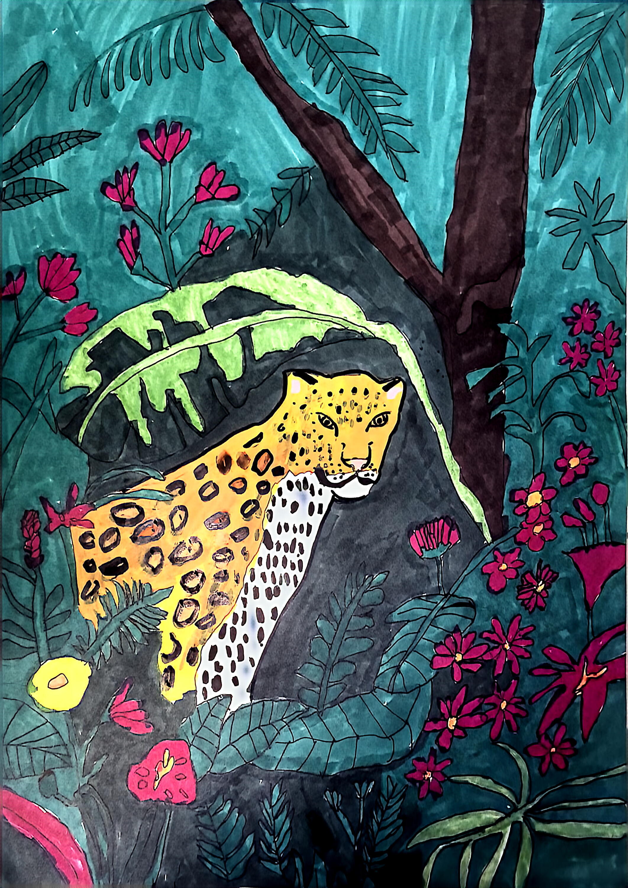 在这50多幅作品中,我们既看到雪豹孤影轻跃于天山岩壁间的灵动,也遇见赤狐回眸时那一瞬清澈如水的眼神;既有雪莲花在冰雪中静静绽放的芬芳与傲骨,也可见少年们心怀天地,将对遥远丛林、深蓝海洋乃至整个星球生灵的喜爱与关注,悄然落笔成温暖的色彩。青少年们用有限的创作时间,迸发出无限的创意与情感,将新疆多样而珍贵的野生动植物形态,真挚而动人地定格于画布之上。