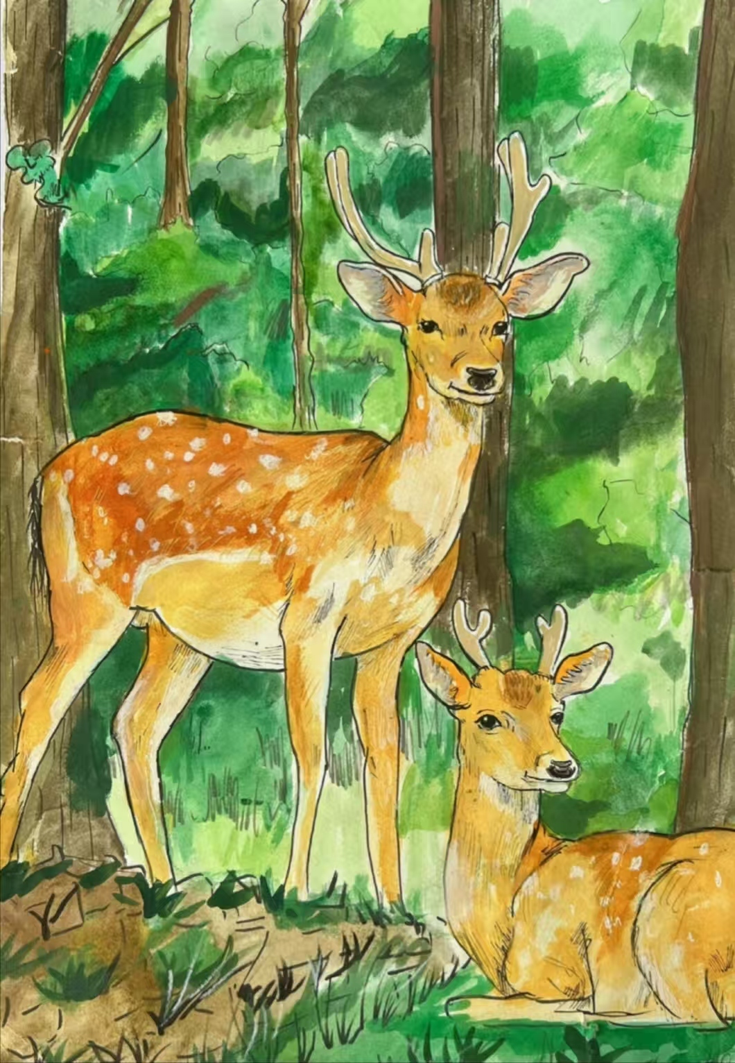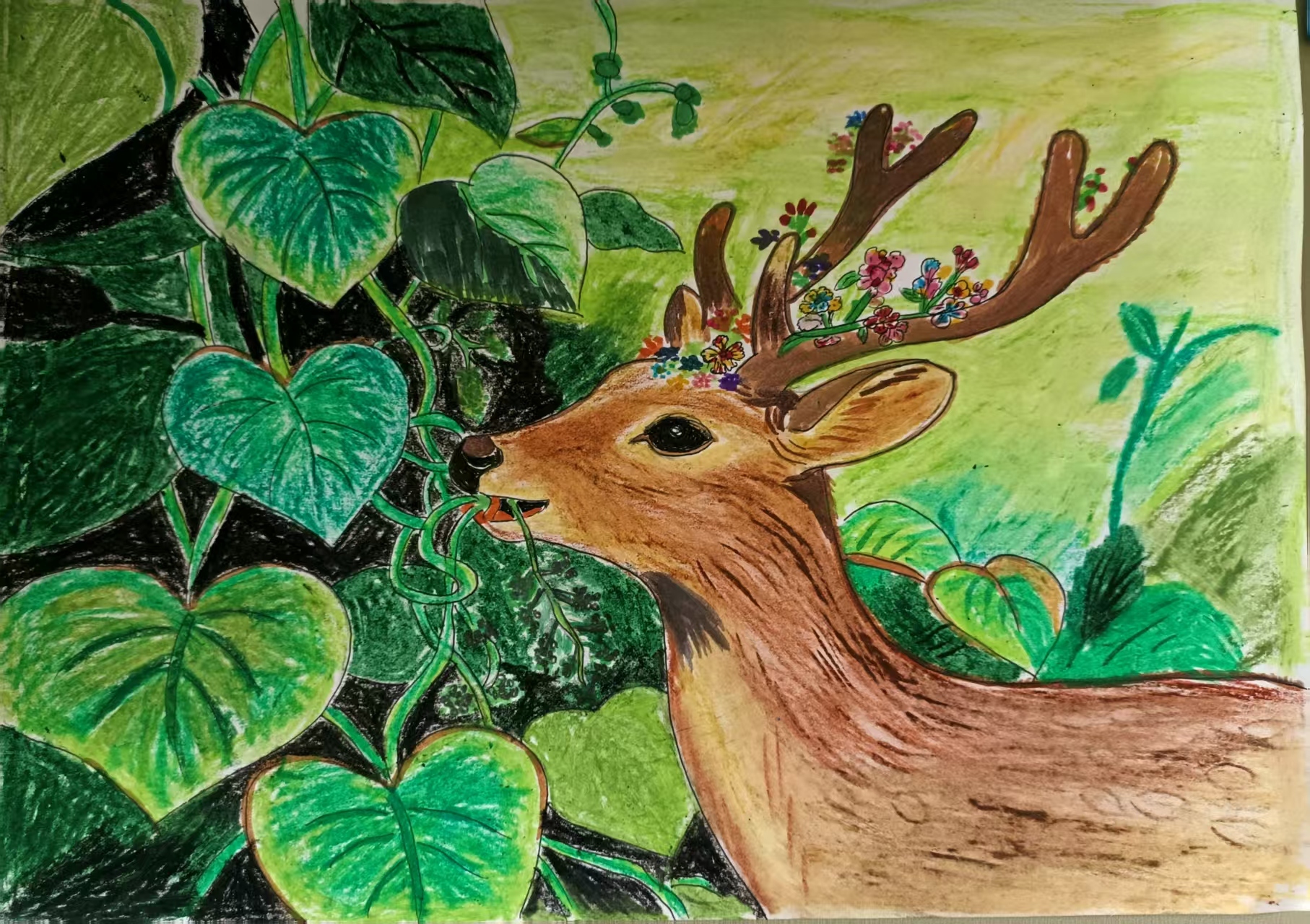 作品征集截止仅两周,我们却收获了远超预期的热情回响——新疆各族青少年以手中画笔,在时光的缝隙里创造了令人惊叹的生态画卷。短短时间内,我们共收到了来自全疆的54幅投稿作品,每一幅都凝聚着年轻创作者对自然最真挚的观察、对生命最深切的礼赞。