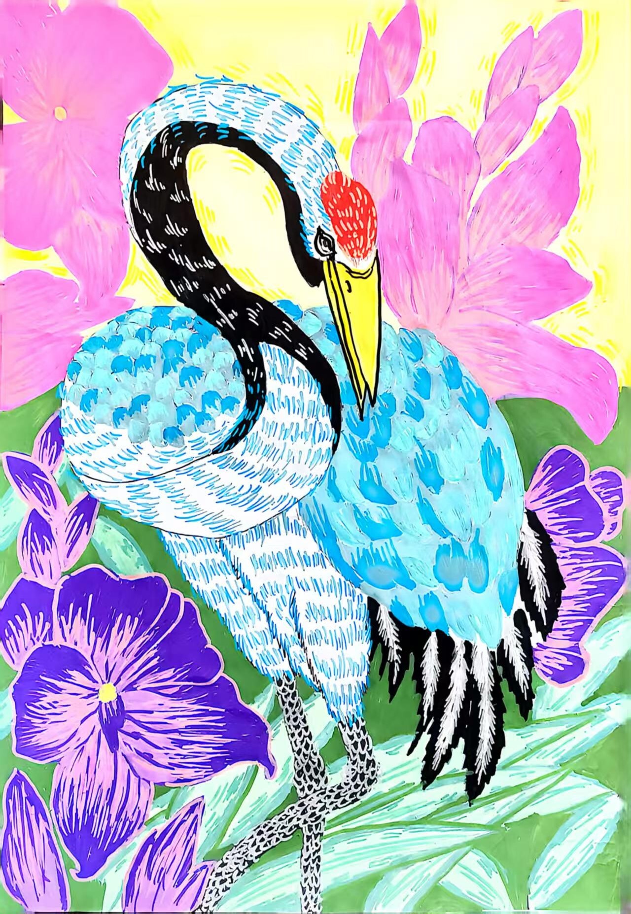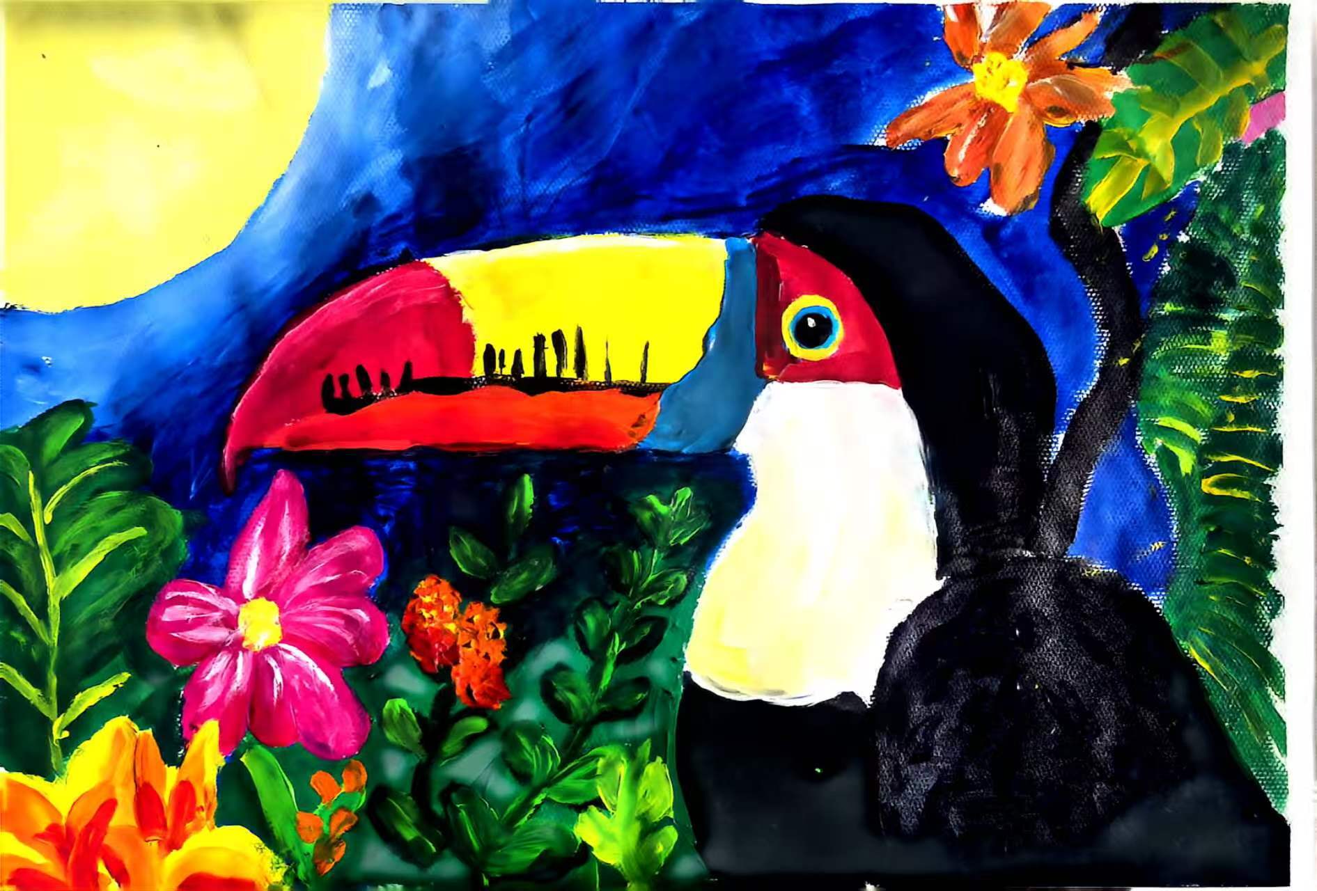 部分作品更以极具视觉冲击力的构图与色彩,警示生态环境面临的挑战,呼吁更多人关注生物多样性保护,展现新疆青少年开阔的国际视野与时代担当。