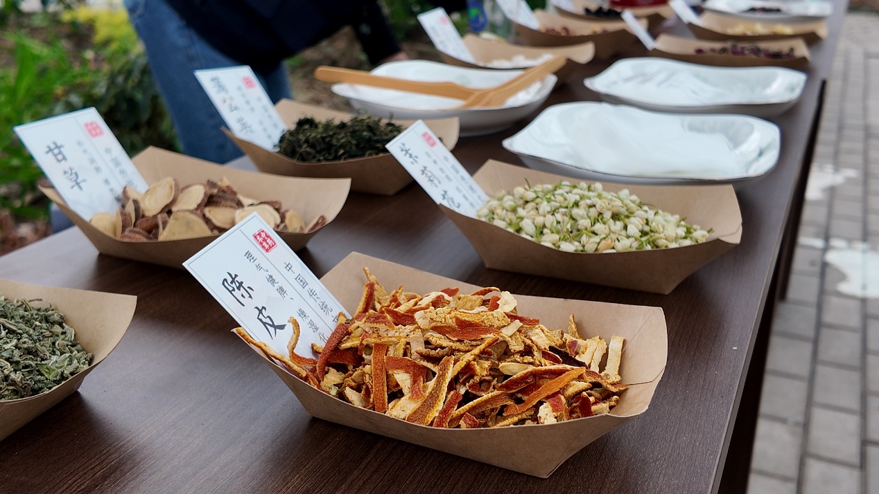 在非物质文化遗产体验区,参观者不仅品尝到以陈皮、甘草、蒲公英、枸杞等道地药材调配的新疆药茶,还在工作人员指导下亲手配制个人专属茶包,切身感受“药食同源”的文化魅力。